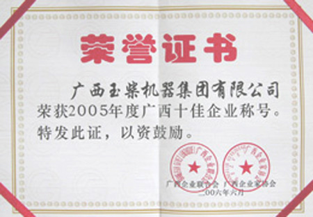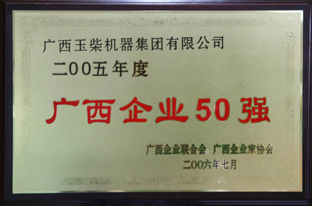 2006年7月14日,廣西企業(yè)家聯(lián)合會、廣西企業(yè)家協(xié)會公布了2005年度廣西企業(yè)50強(qiáng)排序名單,廣西玉柴機(jī)器集團(tuán)有限公司以121億元的銷售收入位居第二名,比去年的第三名上升了一名。