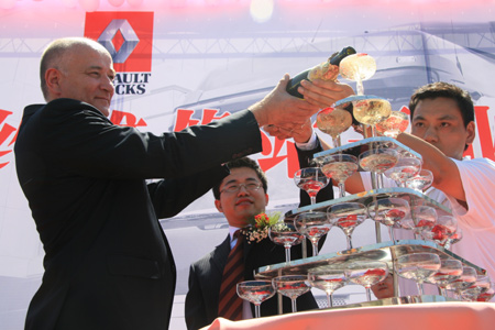 雷諾卡車(上海)有限公司總經(jīng)理畢暄先生,上海豐沃實業(yè)有限公司董事長耿加康先生,浙江速達大件運輸 安裝工程有限公司總經(jīng)理孫鐘杰先生香檳慶祝上海豐沃實業(yè)·雷諾卡車特約維修站開業(yè) 上海豐沃實業(yè)有限公司董事長耿加康先生表示:"選擇浙江速達大件運輸安裝工程有限公司作為雷諾卡車在浙江地區(qū)的特約維修站,不僅因為他們已經(jīng)具備精良的硬件服務(wù)設(shè)施,更是浙江地區(qū)規(guī)模最大,實力最強的超級超限設(shè)備運輸、設(shè)備吊裝的起重運輸單位。而此次與浙江速達強強聯(lián)手也實現(xiàn)了豐沃實業(yè)對購買雷諾卡車用戶的售后服務(wù)承諾,我們相信這些資源將為雷諾卡車在浙江地區(qū)乃至整個華東地區(qū)的雷諾卡車用戶提供強有力的售后服務(wù)保障。"