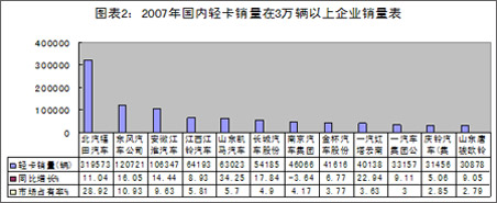 1、07年主流輕卡企業(yè)輕卡銷售分析