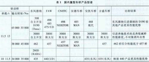 目前,國(guó)內(nèi)重型車(chē)橋的產(chǎn)品型譜如表1所示。