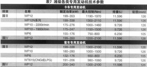 目前濰柴車用發(fā)動(dòng)機(jī)除226B有一款為4缸外,其余各機(jī)型均為6缸(見表7)。