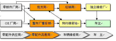 在上述流程圖中,我們最關(guān)注的是配件流通商的具體情況,目前國內(nèi)配件流通商大體包括以下三類: