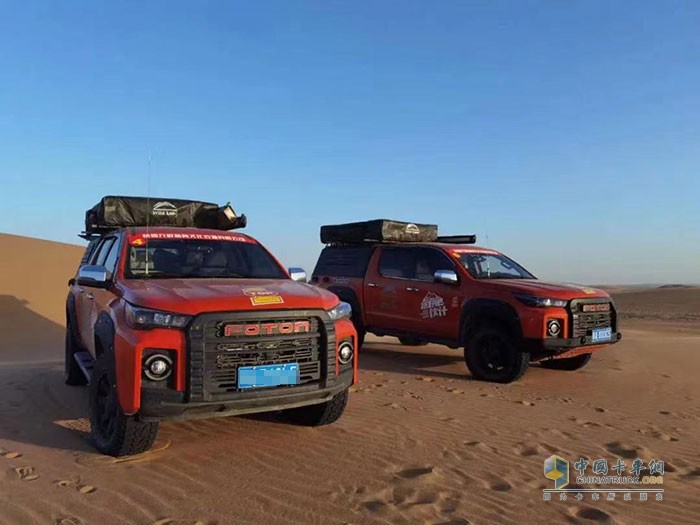 為了更好的適應(yīng)路況,大將軍皮卡換裝前杠、后杠及側(cè)杠,加裝底盤防護(hù),升級黑曼巴二十四段可調(diào)油減專業(yè)減震器、輪胎由265升級為285,后部增加鋼蓋及帳篷,同時加裝無線對講系統(tǒng),滿足野外露營、通聯(lián)需求。駕駛大將軍皮卡在沙海中沖浪,體驗一把沙地“過山車”的過癮,又安全,又舒適,又過癮,咫尺之間,盡攬大漠孤煙的野性不羈,體味極限越野的緊張刺激。