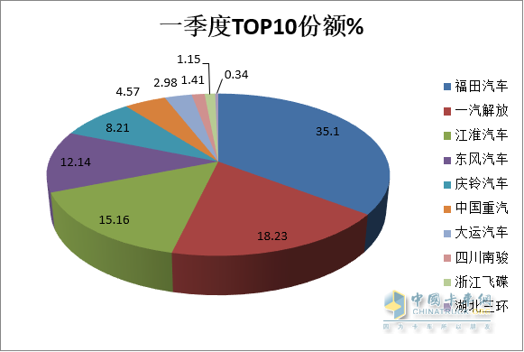 1月份春節(jié)假期耽誤,銷量較少;2月份工作日比1月多,且是春節(jié)后的第一個月,車企的推廣促銷力度較大,導(dǎo)致2月銷量高于1月;3月是中卡市場的傳統(tǒng)旺季,是中卡市場的“金三”季節(jié),因此3月銷量創(chuàng)下今年一季度各月新高。