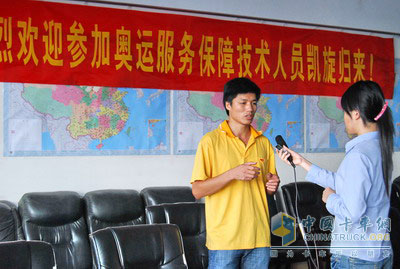 玉柴奧運(yùn)服務(wù)保障技術(shù)人員正在接受采訪