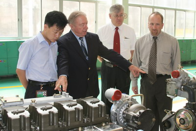 9月8日,美國西南研究院領(lǐng)導高級副總裁Walter P. Groff Jr.、發(fā)動機設計與開發(fā)部主任Mark Tussing、北京代表處首席代表Robert W. Burrahm、北京代表處高級經(jīng)理師西民美等一行4人到訪玉柴,與玉柴高層領(lǐng)導進行了會談。