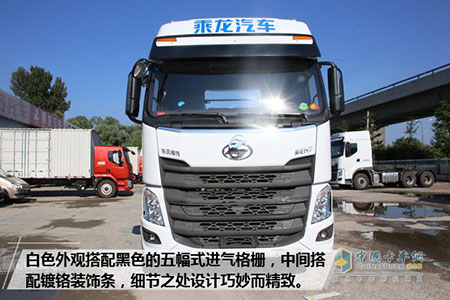 乘龍H7在設(shè)計的伊始之初便被要求對標(biāo)歐洲高端重卡,想當(dāng)年在乘用車市場都需要加價選配的黑色進(jìn)氣格柵如今成了乘龍H7的標(biāo)配,再加上前臉極富張力的造型,東風(fēng)柳汽H7這次著實玩了把顏值控。