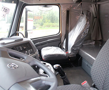 內(nèi)飾的整體風(fēng)格簡潔,打破了傳統(tǒng)重卡笨重的內(nèi)飾設(shè)計,符合人體工學(xué)的中控布局,半包圍式設(shè)計,整體造型簡潔,方便駕駛員操作。平地板設(shè)計及深色下本體和地板配色,使得駕駛室空間更加寬敞,集聚多媒體按鍵方向盤,人性化半包式儀表臺,給駕駛者的操控帶來便捷。
