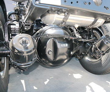 解放JH6新款車型的推力桿經(jīng)過了全新的結構優(yōu)化,幫助車輛降重。懸架采用前2后3板簧結構,車橋使用435升級沖焊橋,速比為3.7。實現(xiàn)板簧輕量化,使得單車降重58KG。JH6凸地板車型采用了大量輕量化設計,譬如前盤后鼓、輕量化前軸、高強度700L鋼輥壓車架、鋁合金燃油箱與車輪等,大幅降低了車身重量,整車自重最低只有7.88噸,實現(xiàn)了大幅度的降重。