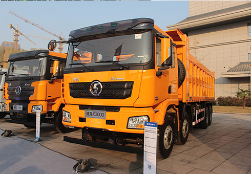 陜汽德龍X3000外觀延續(xù)陜汽重卡自卸車的家族式設(shè)計(jì),水箱和中冷器下方帶有保護(hù)裝置,組合式X形前照燈。前車頭標(biāo)配防鉆桿,可以防止非機(jī)動(dòng)車或者轎車進(jìn)入車底,互相保護(hù)。