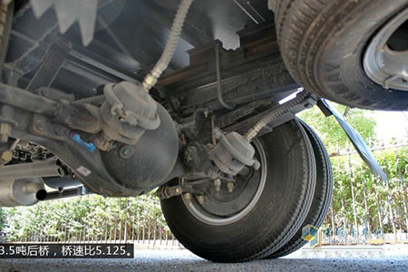 作為輕型卡車的凱普特E280,其底盤的承載性能也十分出眾,首先采用了輕量化設(shè)計,其次采用了更寬更厚的大粱,提高了車身的抗扭曲性能,使穩(wěn)定性加強,而且使用了的帶干燥器的排氣制動器,全面提升駕駛安全系數(shù)。在底盤優(yōu)化的同時,凱普特E280的前后橋也做了進一步調(diào)整,后橋為3.5噸后橋,速比為5.125,前橋為少片簧設(shè)計,后橋為分體式多片簧,讓整車的承載性和可靠性更上一層樓。