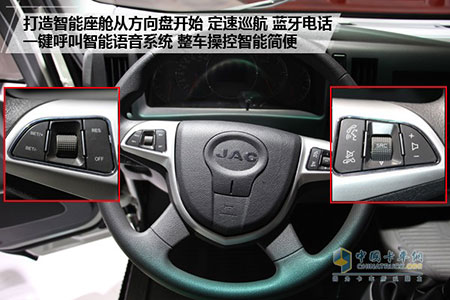 走入帥鈴全能卡車內(nèi)部,首先給人一種轎車的感覺,多媒體系統(tǒng),電動(dòng)空調(diào),多功能方向盤、定速巡航、一鍵升降防夾玻璃升降器等一應(yīng)俱全。