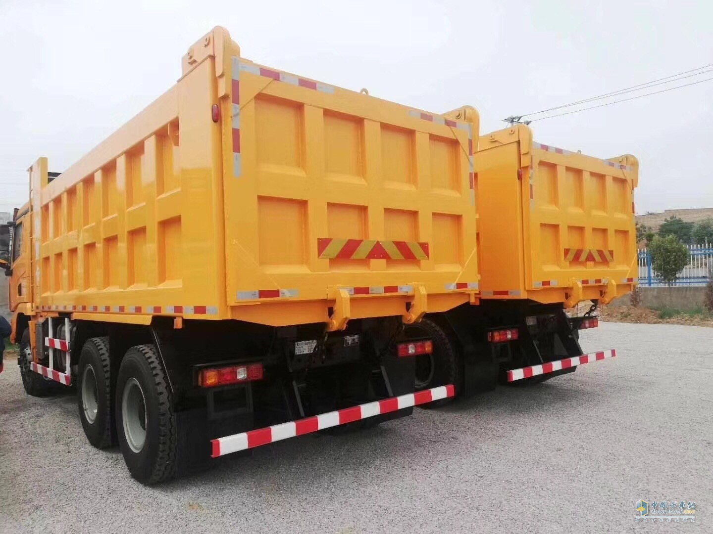 400L鋁合金油箱左置/軸距3975+1400/金屬保險杠/空氣主座椅/液壓懸置/自動空調(diào)/電動搖窗機/天行健智雅版BD車載終端/油浴式空濾器//加強傳動軸/國產(chǎn)四通道ABS發(fā)動機車下啟動/180Ah免維護蓄電池/其余標配。重曼卡上裝:5600*2350*1500,底14邊10,國產(chǎn)180油缸前舉,田字格,五縱梁,套裝梁,貫通式翻轉(zhuǎn)軸,整車滿焊,后門全槽鋼,后門導鏈啟閉機構(gòu)非公路標準,后門二次啟閉,主縱梁與橫梁外側(cè)處加包角,其余標配。出具SX32505B4041A (WP12.375E50/12.00R20/5600*2350*1500)整車合格證及銘牌。