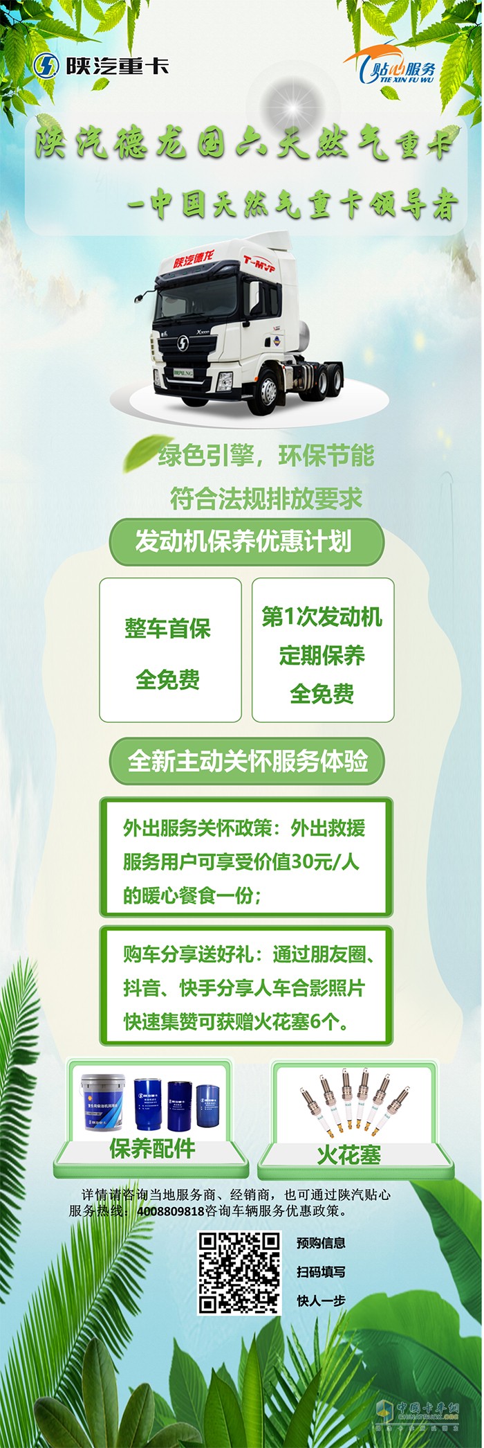 購(gòu)德龍國(guó)六天然氣重卡,享多重福利,現(xiàn)在購(gòu)德龍國(guó)六天然氣重卡可以享受發(fā)動(dòng)機(jī)保養(yǎng)優(yōu)惠機(jī)會(huì),全新主動(dòng)關(guān)懷服務(wù)體驗(yàn),等等多重福利,福利多多快來(lái)選購(gòu)吧!