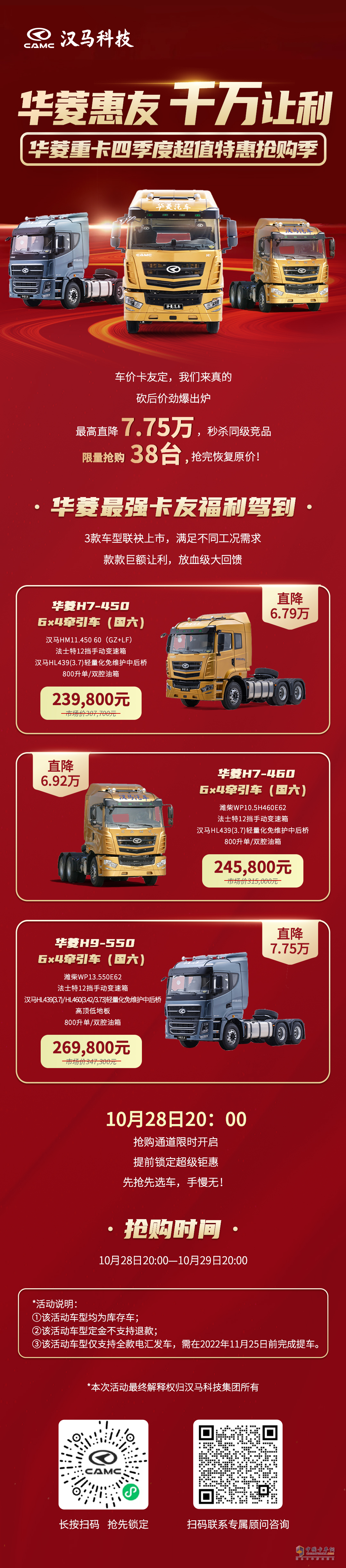 不負(fù)卡友厚愛,華菱H7/H9砍后價公開,最高直降7.75萬!