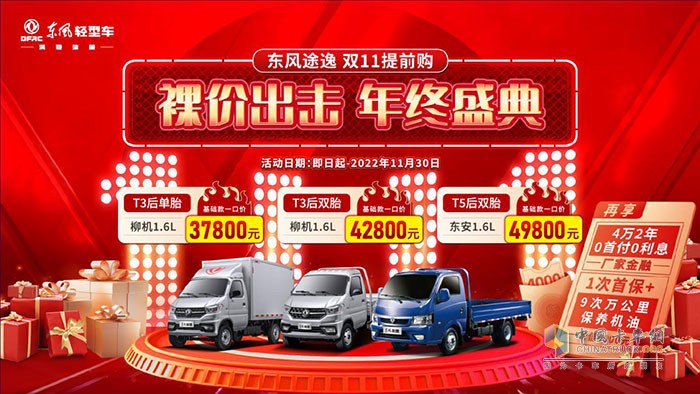 東風(fēng)途逸不僅以硬實(shí)力助力鄉(xiāng)村振興,同時(shí)更以令人心動(dòng)的價(jià)格回饋廣大消費(fèi)者,期待助力每位消費(fèi)者能夠攜手東風(fēng)途逸,賺得“盆滿缽滿”。值此“雙十一”狂歡購物節(jié)即將到來之際,即日起至2022年11月30日購車用戶可享受超級(jí)鉅惠: