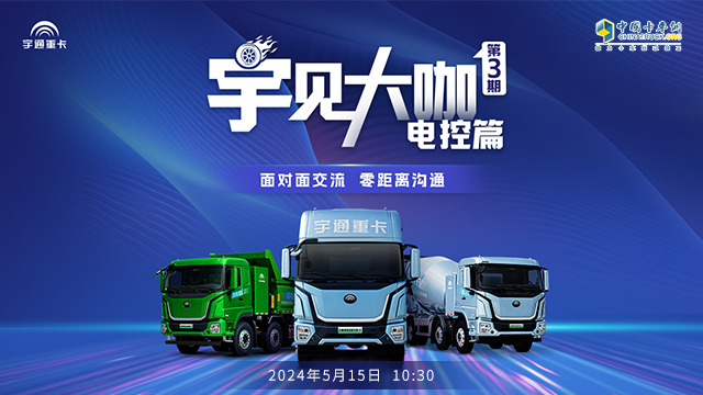 5月15日10:30,《宇見大咖》電控篇,主要講解宇通三電技術(shù)中的電控技術(shù)在宇通重卡上的應(yīng)用。