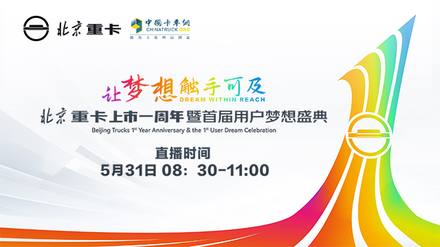 5月31日08:30,讓夢想觸手可及,北京重卡上市一周年暨首屆用戶夢想盛典