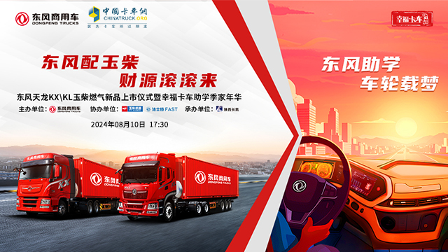 8月10日17:30,東風(fēng)配玉柴 財(cái)源滾滾來 東風(fēng)天龍KX KL玉柴燃?xì)庑缕飞鲜袃x式暨幸??ㄜ囍鷮W(xué)季家年華