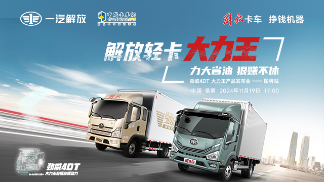 11月19日17:00,解放輕卡【大力王】,勁威4DT 大力王產(chǎn)品發(fā)布會——昆明站