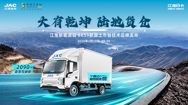 3月20日09:30,江淮新能源輕卡ES9 “單包大電量”、“超寬駕駛室”、“超強承載力”三大突出價值點,強調(diào)帶給用戶長續(xù)航、強承載和更省心,輕松實現(xiàn)跨城運營需求;同時“星鏈1號技術(shù)平臺”、“純電輕卡正向開發(fā)”、“三電價值”等內(nèi)容,解析江淮新能源輕卡黑科技技術(shù)。