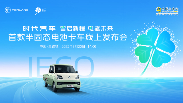 3月20日 14:00,智啟新程 電驅(qū)未來 時(shí)代汽車首款半固態(tài)電池卡車線上發(fā)布會