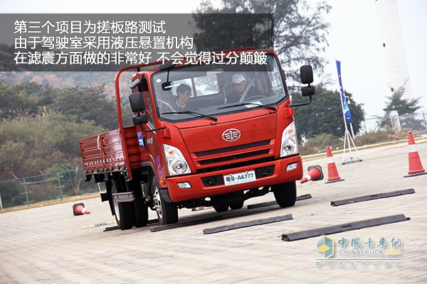 經(jīng)過三個(gè)試駕體驗(yàn)項(xiàng)目的測(cè)試,再加減速環(huán)節(jié),一汽通用汽車解放F330速豹給編輯的印象是起步非常迅猛,扭矩非常的大,在1400-2900rpm之間可以爆發(fā)360Nm,采用氣剎制動(dòng)效果非常出色。在繞樁測(cè)試過程中,解放F330速豹表現(xiàn)非常平穩(wěn),因?yàn)樵诤髽蛟黾恿藱M向穩(wěn)定桿。最后一個(gè)項(xiàng)目,過搓板路過程中坐在駕駛室內(nèi)的駕駛員沒有感受過分的顛簸,這與解放F330速豹采用液壓懸掛密不可分。