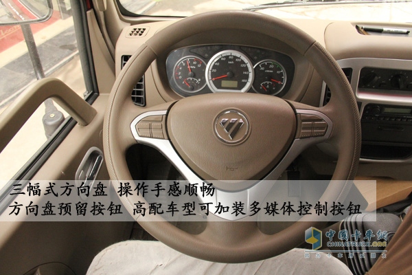 淺灰方向盤附白色光條,不顯單調。同時預留的多功能按鈕,方便用戶日后加裝定速巡航和多媒體配件操作。三幅式的設計讓駕駛指向更準確便捷。