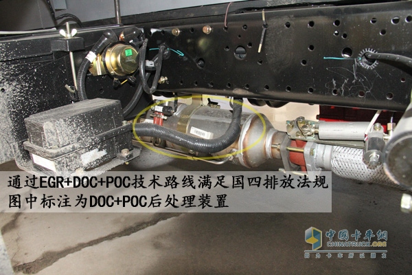 車輛通過EGR+DOC+POC技術滿足國四排放要求,免去加注尿素的成本,而且在康明斯動力的支持下可以升級至國五/歐V標準。同時電源箱密封設計,有效隔污隔水,保證整車供電安全性。線速包裹嚴實,布置合理。