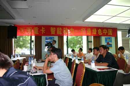 關(guān)注卡車行業(yè)的人都知道,陜汽和康明斯聯(lián)合舉辦的推介會已經(jīng)在全國進(jìn)行了好多場。據(jù)康明斯北京辦事處高級主管胡浩稱,類似推介會將在全國舉辦一百場以上。據(jù)筆者觀察,每次的推介會都有當(dāng)?shù)蒯槍π缘能囆椭赝瞥觥?007年7月10日,以“聰明重卡、智能動力,打造綠色中國”為主題的陜汽康明斯重卡系列產(chǎn)品“07綠色中國行動”在北京經(jīng)濟(jì)技術(shù)開發(fā)區(qū)亦莊圣坤酒店舉行。來自行業(yè)內(nèi)的100多名代表參加了此次推廣會。本次推介會就強(qiáng)調(diào)了針對北京龐大的建筑市場所用的以德龍康明斯為底盤的水泥攪拌車。