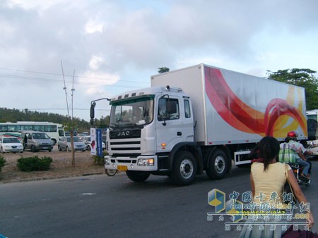5月4日,海南三亞,奧運冠軍楊揚手持“祥云”火炬,跑出三亞站圣火傳遞第一棒,由此拉開了奧運圣火在中國內地傳遞的序幕。在這個令國人激動地時刻,每個人用自己的方式表達著對祖國的熱愛之情,在服務圣火傳遞的物流運輸車隊中,有一個無名英雄也正默默的為奧運服務。他就是江淮汽車旗下的格爾發(fā)重卡。他將伴隨“祥云”和近2萬名火炬手走遍大江南北,傳遞奧運夢想。