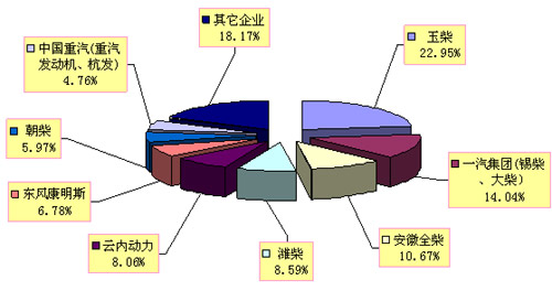 表6:2008年車用柴油機主要生產(chǎn)企業(yè)銷量及市場份額