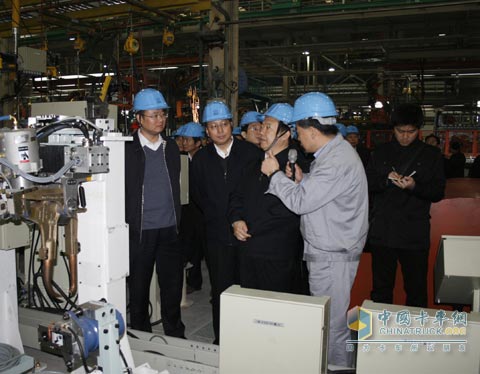 王三運(yùn)一行沿沖壓、焊裝、涂裝和總裝四大生產(chǎn)工藝參觀了華菱重卡生產(chǎn)線,參觀途中,王三運(yùn)不時(shí)停下腳步,察看了解生產(chǎn)情況。在焊裝車間的星凱馬生產(chǎn)線,劉漢如董事長向王三運(yùn)詳細(xì)介紹了星凱馬重卡的開發(fā)道路。他說,星凱馬的開發(fā),我們走的是國際聯(lián)合開發(fā)新路子,車身是和意達(dá)利博通設(shè)計(jì)所聯(lián)合開發(fā)設(shè)計(jì),駕駛室性能我們與湖南大學(xué)汽車車身先進(jìn)設(shè)計(jì)制造國家重點(diǎn)實(shí)驗(yàn)室進(jìn)行了合作,車身內(nèi)飾件是與意大利立達(dá)汽車系統(tǒng)公司聯(lián)合開發(fā),整個(gè)車身的性能指標(biāo),都是按照歐盟的標(biāo)準(zhǔn),按照歐洲人的駕駛習(xí)慣來設(shè)計(jì)的。目前,華菱的四大工藝生產(chǎn)線代表了中國重型汽車生產(chǎn)的最高工藝水平,尤其是星凱馬焊接生產(chǎn)線,是投資2億多元人民幣、由16臺焊接機(jī)器人和200套模具組成的全自動(dòng)焊接生產(chǎn)線,也是國內(nèi)最先進(jìn)的重卡焊接生產(chǎn)線,在國際上也處于先進(jìn)水準(zhǔn)。