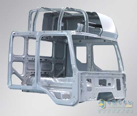 首先是駕駛室,“龍骨框架”的厚實(shí)底子之外,是全鋼的頂蓋、前面板、整體式車門、保險(xiǎn)杠等,關(guān)鍵部位更采用高強(qiáng)度鋼板。尤如外罩了一層“金鐘罩”。