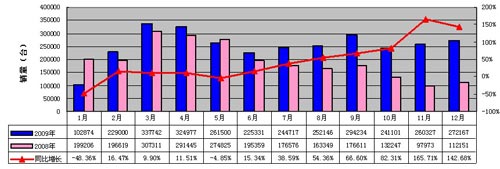 圖表1:2009年車用柴油機(jī)分月度銷售態(tài)勢(shì)