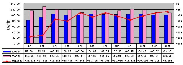 圖表5:2009年車用柴油機(jī)平均每臺(tái)功率分月度變化情況