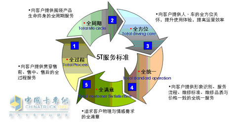 2011年1月9日,歐曼率先推出終身服務(wù)標準“5T”,涉及“全過程、全周期、全方位、全統(tǒng)一、全滿意”五個方面,首次將售后服務(wù)從三包期內(nèi)延伸到終身服務(wù),開創(chuàng)了中國重卡行業(yè)與世界級重卡服務(wù)接軌的先河。劃時代地提出將重卡服務(wù)從三包服務(wù)延伸到終身服務(wù),一改三包期后重卡產(chǎn)品得不到正規(guī)服務(wù)的現(xiàn)象。真正做到想用戶所想,使用戶以最快捷、最省心的方式感受到歐曼服務(wù)品質(zhì)的提升。服務(wù)新標準的實施將會讓更多的司機告別小修理廠,選擇在正規(guī)服務(wù)站進行維修保養(yǎng),從只能在三包期接受到廠家的關(guān)懷,到終身接受廠家人車全面關(guān)懷。