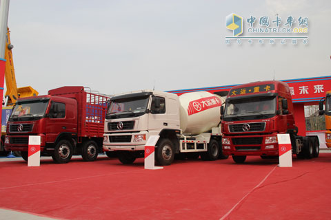 本次太原卡車展,山西本土力量大運(yùn)重卡派出了包括兩款自卸車、三款牽引車、一款攪拌車在內(nèi)的六款重卡集群出擊。其標(biāo)志性的輕量化牽引車獲得了普遍好評(píng)。