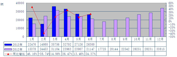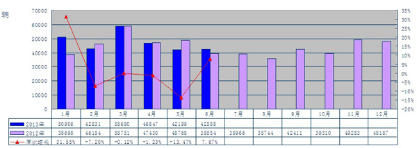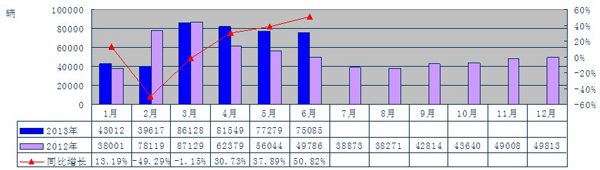 圖表3:2013年上半年重型卡車分月度銷售態(tài)勢