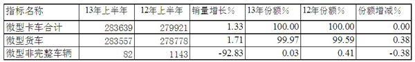 圖表11:2013/2012上半年微卡細(xì)分市場銷售統(tǒng)計(jì)對比(單位:輛)