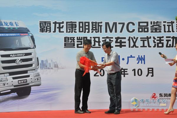 2013年10月12日,15輛霸龍康明斯M7C牽引車的交車儀式在廣州隆重舉行,廣州凱迅公司負責人從東風柳汽商用車銷售公司總經(jīng)理李克平手里接過了車鑰匙。凱迅公司是廣東重要的油品運輸企業(yè),此次采購的15輛M7C,主要用于?;愤\輸。這一事件標志著霸龍康明斯M7C成功進入廣東的?;愤\輸市場。