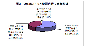 表1 2013年1~9月份國產(chǎn)卡車細分市場銷售情況表單位:輛,%