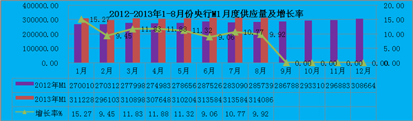 圖表7:2013年1-8月份M1月度供應(yīng)量
