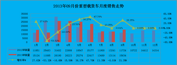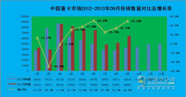 三、2013年前三季度重卡市場(chǎng):“金九”市場(chǎng)明顯回暖,累計(jì)增長(zhǎng)15.3%