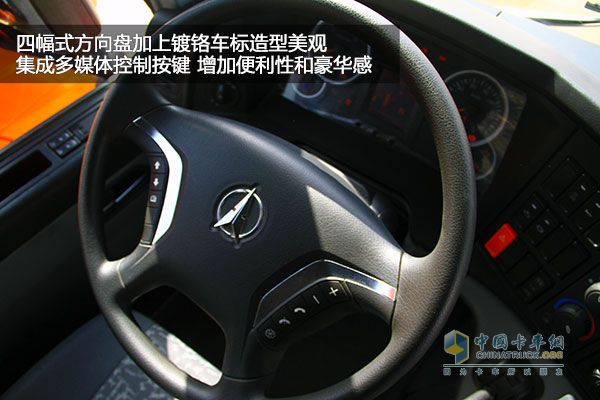 在節(jié)油方面,動(dòng)力匹配經(jīng)過AVLcruise進(jìn)行優(yōu)化,使發(fā)動(dòng)機(jī)、變速箱、驅(qū)動(dòng)橋完美匹配,在常用工況下發(fā)揮最經(jīng)濟(jì)、最強(qiáng)勁狀態(tài);此外車身風(fēng)阻系數(shù)0.569,達(dá)到國內(nèi)最優(yōu)。在高效方面,整車采用專業(yè)調(diào)校的發(fā)動(dòng)機(jī)、速比優(yōu)化的多檔位變速器、13噸級驅(qū)動(dòng)橋,整車特別適合高速標(biāo)載運(yùn)輸。