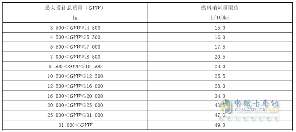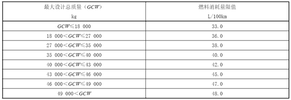 表1:營運(yùn)貨車燃油消耗量限值(L/100km)
