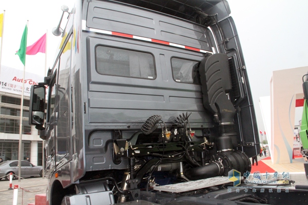 V3HT采用后開兩面窗設計,駕駛室采光、乘車人員觀察效果更好。北奔駕駛室采用減震彈簧設計,減震效果沒有氣囊懸掛優(yōu)異,這點讓小編有點失望。“短鼻式”式的高位引氣管擁有較低的進氣阻力,進氣更加充分