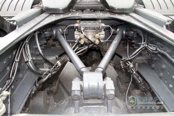 采用常見的V型推力桿設計,有效減少橋位移。而且配有ABS系統(tǒng),防止緊急制動情況下車輪抱死,制動性能更加優(yōu)秀也減少了輪胎不必要的磨損。但細心的司機朋友們肯定會發(fā)現(xiàn)底盤線束布置不夠整齊,的確,線束布置給人感覺好像是隨便拿扎帶一捆就行了,缺乏合理性