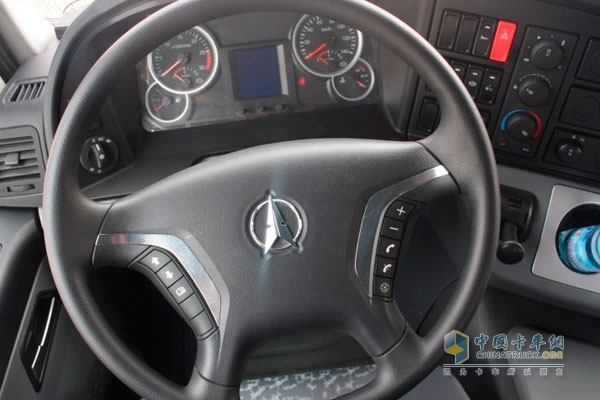 駕駛室采用V3長駕高頂,前臉非常大氣。前身各個部件造型設計符合空氣動力學要求,流線型設計有效減少風阻。該車搭載濰柴WP12.375E40發(fā)動機,發(fā)動機可輸出馬力為375馬力