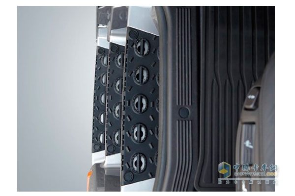 如照片上所看到的那樣,通過設(shè)計(jì)對導(dǎo)流罩、后視鏡和保險(xiǎn)杠周圍進(jìn)行了優(yōu)化,整個駕駛室的流線型設(shè)計(jì)讓人非常舒服??諝鈩恿W(xué)的應(yīng)用也有效的較低風(fēng)阻,實(shí)現(xiàn)車體污染最小化。